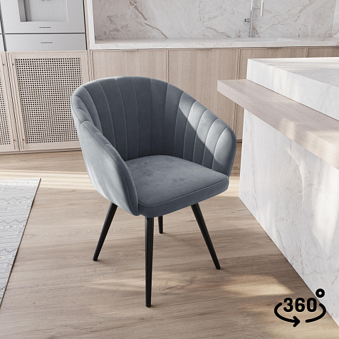 Мягкий стул «Микки» выделяется аккуратной строчкой на спинке и высокими подлокотниками. Обивка выполнена из мягкого велюра с элегантным блеском. Благодаря поворотному механизму можно удобно расположиться на стуле, не перемещая его по полу. Стул станет идеальным дополнением как для кухни, так и для гостиной или спальни.
