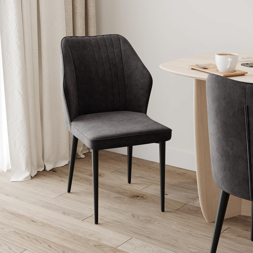 Мягкий стул «Берг» от итальянского дизайнера-конcтруктора Giovanni Lella украсит интерьер кухни и сделает отдых комфортным. Модель выделяется круглой спинкой с вертикальными линиями и боковыми частями, имитирующими подлокотники. Задние ножки расположены под углом и визуально продолжают изгиб боковых частей спинки. Комплект из 4-6 стульев станет изящным акцентом в интерьере кухни.