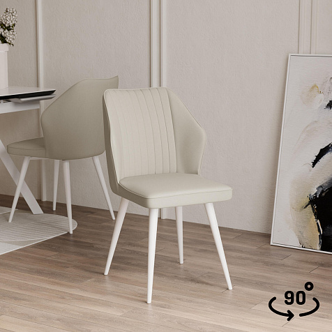 Стул «Берг» с поворотом на 90 градусов украсит интерьер кухни и сделает отдых комфортным. Модель выделяется закруглённой спинкой с вертикальными линиями и боковыми частями, имитирующими подлокотники. Благодаря поворотному механизму можно удобно расположиться на стуле, не перемещая его по полу. Комплект из четырёх-шести стульев станет гармоничным дополнением к кухне и создаст уютную обстановку.