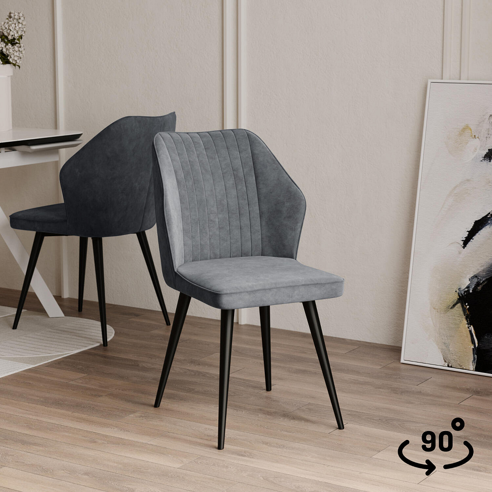 Стул «Берг» с поворотом на 90 градусов украсит интерьер кухни и сделает отдых комфортным. Модель выделяется закруглённой спинкой с вертикальными линиями и боковыми частями, имитирующими подлокотники. Благодаря поворотному механизму можно удобно расположиться на стуле, не перемещая его по полу. Комплект из четырёх-шести стульев станет гармоничным дополнением к кухне и создаст уютную обстановку.