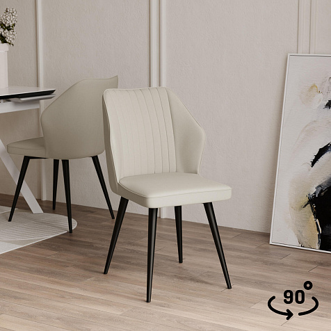 Стул «Берг» с поворотом на 90 градусов украсит интерьер кухни и сделает отдых комфортным. Модель выделяется закруглённой спинкой с вертикальными линиями и боковыми частями, имитирующими подлокотники. Благодаря поворотному механизму можно удобно расположиться на стуле, не перемещая его по полу. Комплект из четырёх-шести стульев станет гармоничным дополнением к кухне и создаст уютную обстановку.
