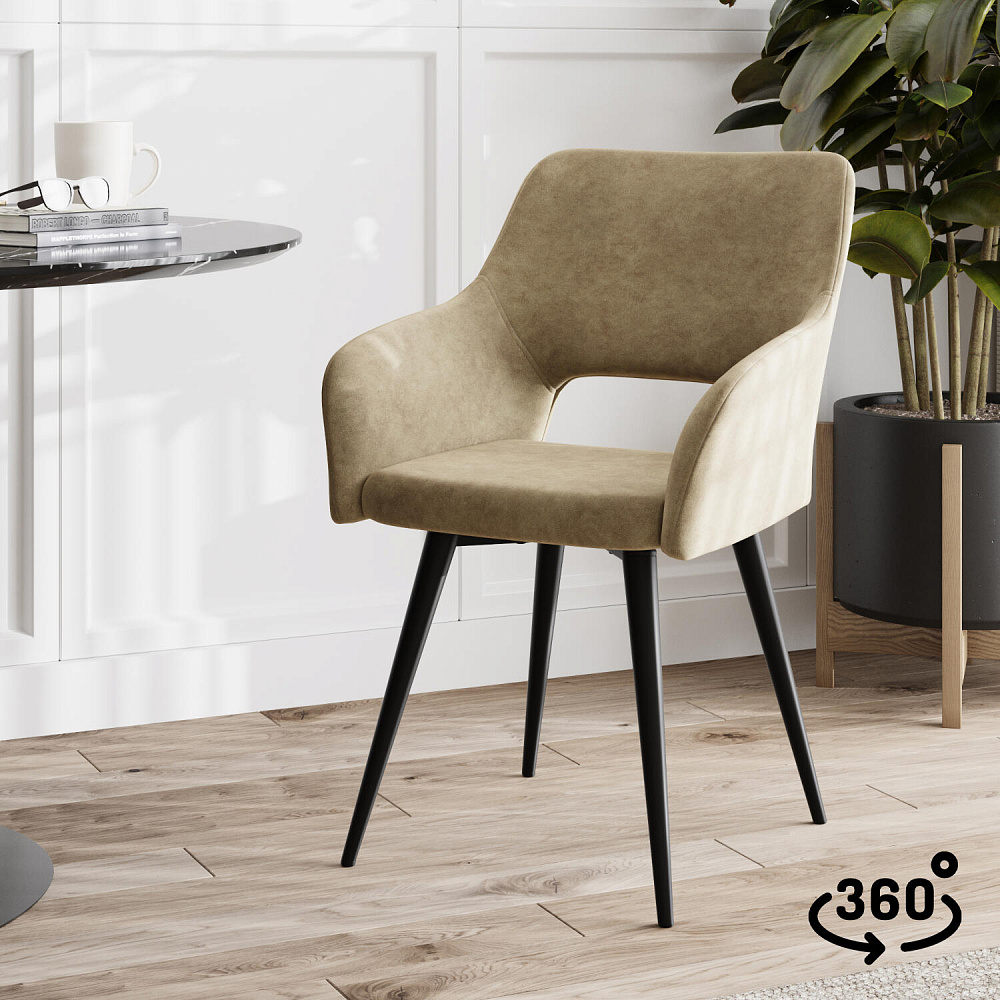 Мягкий стул «Чарли» с поворотным основанием сделает отдых комфортным и украсит интерьер. Модель выделяется прорезью между спинкой и сиденьем и узкими подлокотниками. Благодаря поворотному механизму можно удобно расположиться на стуле, не перемещая его по полу. Комплект из 4-6 стульев станет элегантным дополнением в интерьере кухни.