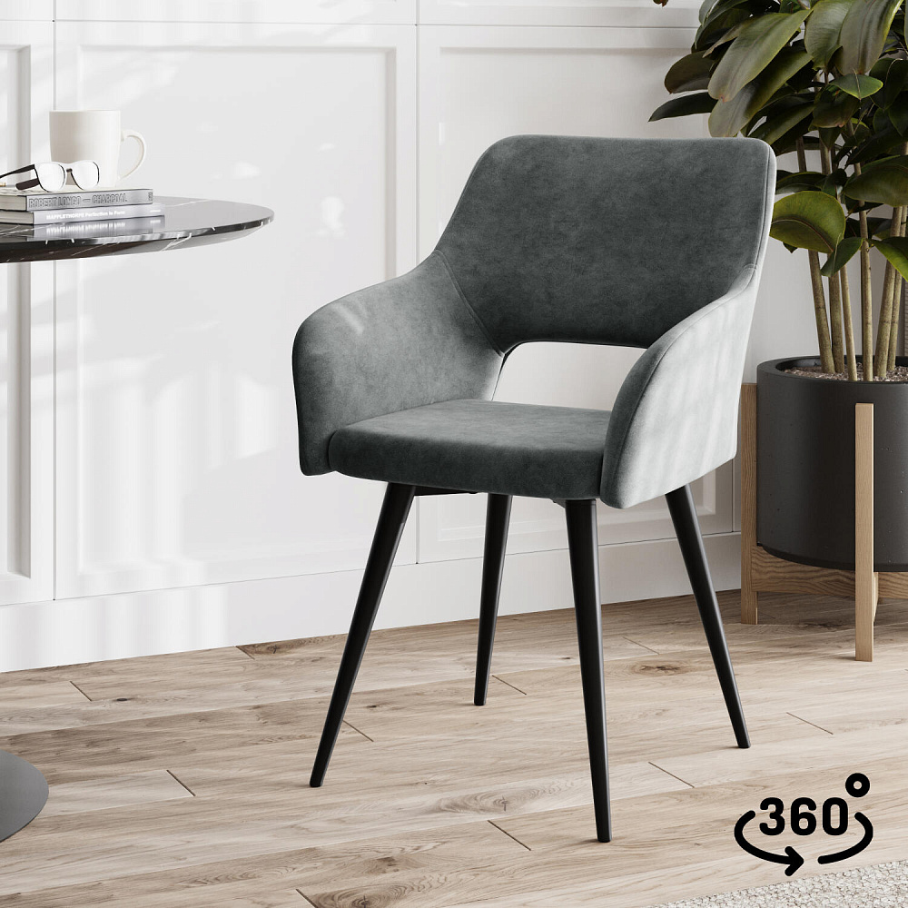 Мягкий стул «Чарли» с поворотным основанием сделает отдых комфортным и украсит интерьер. Модель выделяется прорезью между спинкой и сиденьем и узкими подлокотниками. Благодаря поворотному механизму можно удобно расположиться на стуле, не перемещая его по полу. Комплект из 4-6 стульев станет элегантным дополнением в интерьере кухни.