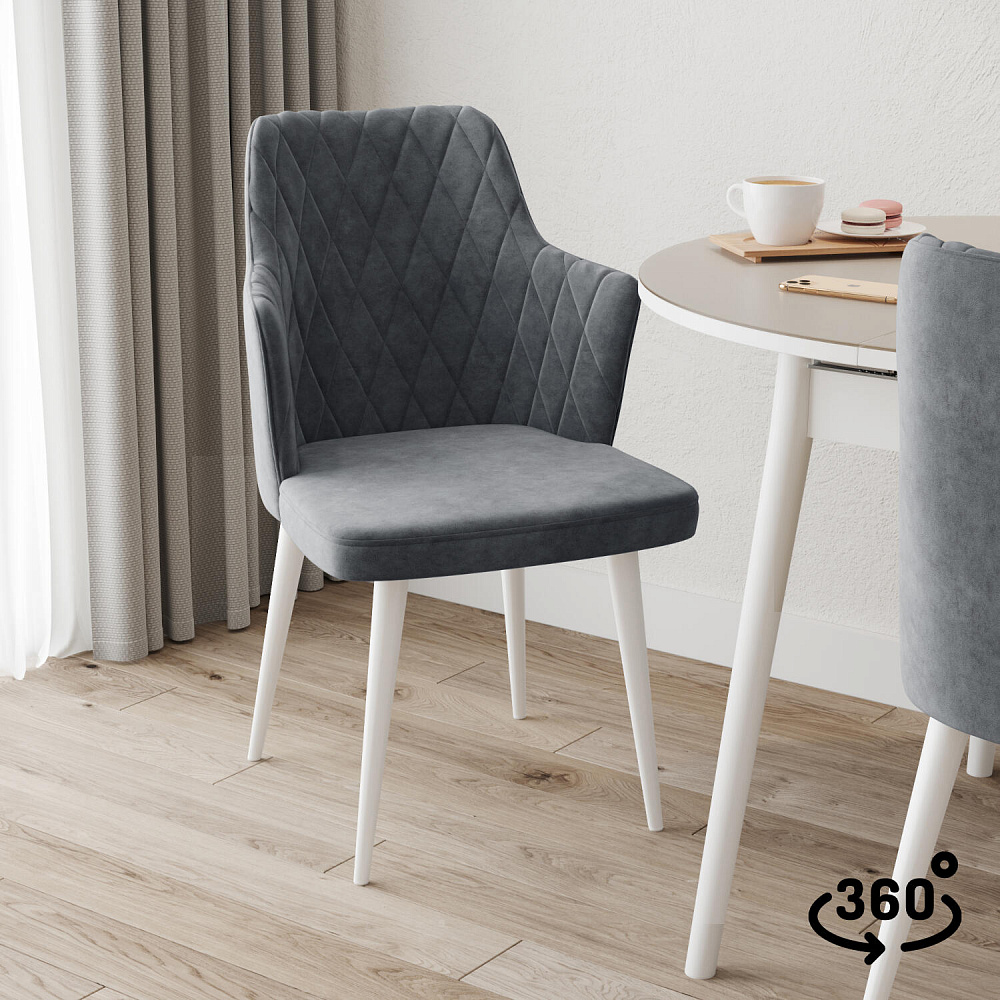 Мягкий стул «Хант» от итальянского дизайнера-конcтруктора Giovanni Lella украсит интерьер кухни и сделает отдых комфортным. Модель выделяется круглой спинкой с ромбовидной строчкой и угловыми короткими подлокотниками. Задние ножки расположены под углом и визуально продолжают изгиб подлокотников. Благодаря поворотному механизму можно удобно расположиться на стуле, не перемещая его по полу. Комплект из 4-6 стульев станет изящным акцентом в интерьере кухни.