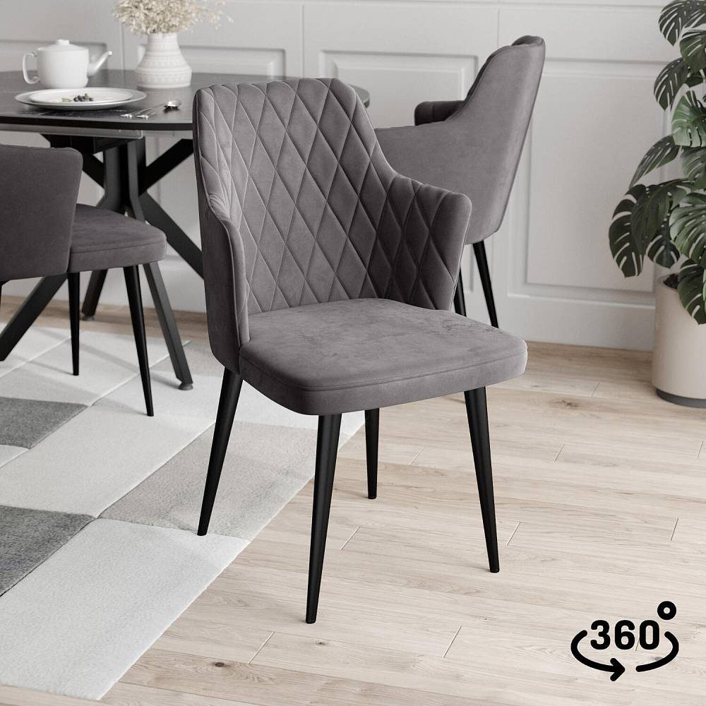 Мягкий стул «Хант» от итальянского дизайнера-конcтруктора Giovanni Lella украсит интерьер кухни и сделает отдых комфортным. Модель выделяется круглой спинкой с ромбовидной строчкой и угловыми короткими подлокотниками. Задние ножки расположены под углом и визуально продолжают изгиб подлокотников. Благодаря поворотному механизму можно удобно расположиться на стуле, не перемещая его по полу. Комплект из 4-6 стульев станет изящным акцентом в интерьере кухни.