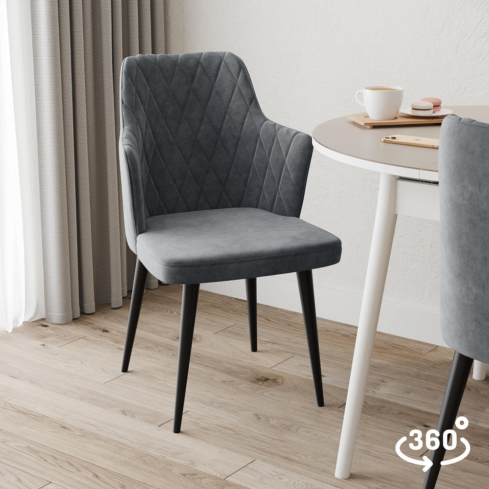 Мягкий стул «Хант» от итальянского дизайнера-конcтруктора Giovanni Lella украсит интерьер кухни и сделает отдых комфортным. Модель выделяется круглой спинкой с ромбовидной строчкой и угловыми короткими подлокотниками. Задние ножки расположены под углом и визуально продолжают изгиб подлокотников. Благодаря поворотному механизму можно удобно расположиться на стуле, не перемещая его по полу. Комплект из 4-6 стульев станет изящным акцентом в интерьере кухни.