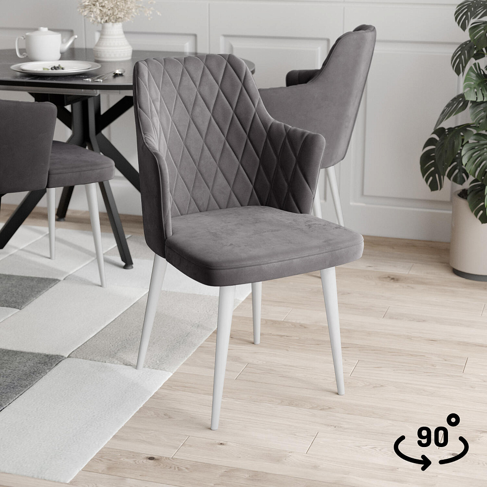 Мягкий стул «Хант» от итальянского дизайнера-конcтруктора Giovanni Lella украсит интерьер кухни и сделает отдых комфортным. Модель выделяется круглой спинкой с ромбовидной строчкой и угловыми короткими подлокотниками. Благодаря поворотному механизму можно удобно расположиться на стуле, не перемещая его по полу. Комплект из 4-6 стульев станет изящным акцентом в интерьере кухни.