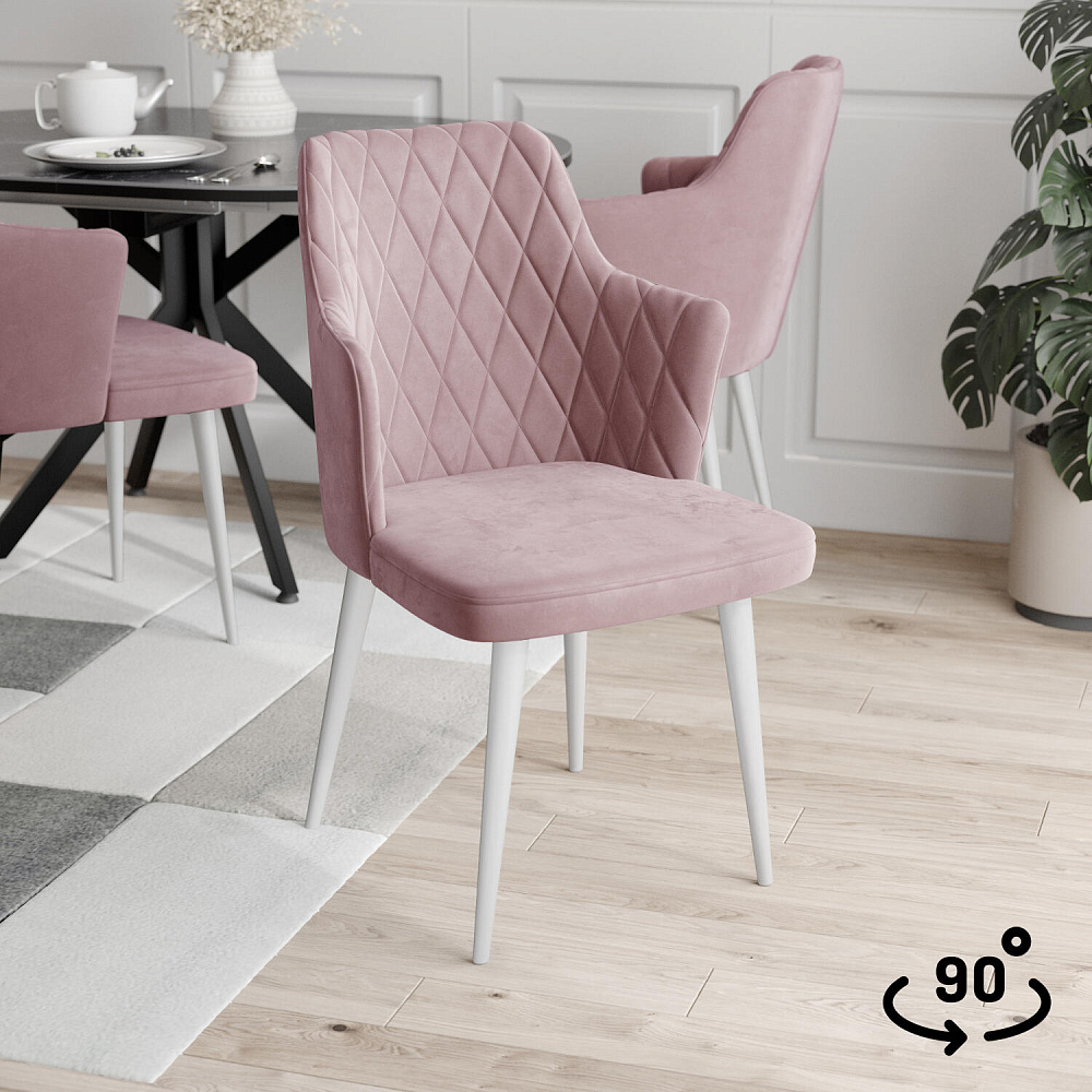 Мягкий стул «Хант» от итальянского дизайнера-конcтруктора Giovanni Lella украсит интерьер кухни и сделает отдых комфортным. Модель выделяется круглой спинкой с ромбовидной строчкой и угловыми короткими подлокотниками. Благодаря поворотному механизму можно удобно расположиться на стуле, не перемещая его по полу. Комплект из 4-6 стульев станет изящным акцентом в интерьере кухни.