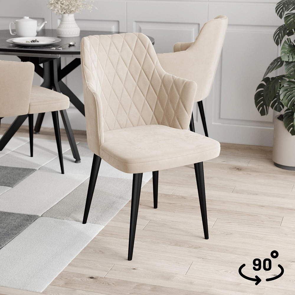 Мягкий стул «Хант» от итальянского дизайнера-конcтруктора Giovanni Lella украсит интерьер кухни и сделает отдых комфортным. Модель выделяется круглой спинкой с ромбовидной строчкой и угловыми короткими подлокотниками. Благодаря поворотному механизму можно удобно расположиться на стуле, не перемещая его по полу. Комплект из 4-6 стульев станет изящным акцентом в интерьере кухни.