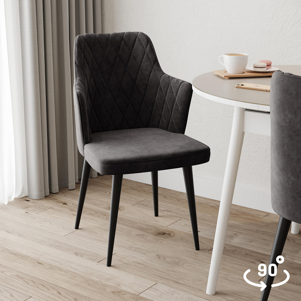 Мягкий стул «Хант» от итальянского дизайнера-конcтруктора Giovanni Lella украсит интерьер кухни и сделает отдых комфортным. Модель выделяется круглой спинкой с ромбовидной строчкой и угловыми короткими подлокотниками. Благодаря поворотному механизму можно удобно расположиться на стуле, не перемещая его по полу. Комплект из 4-6 стульев станет изящным акцентом в интерьере кухни.