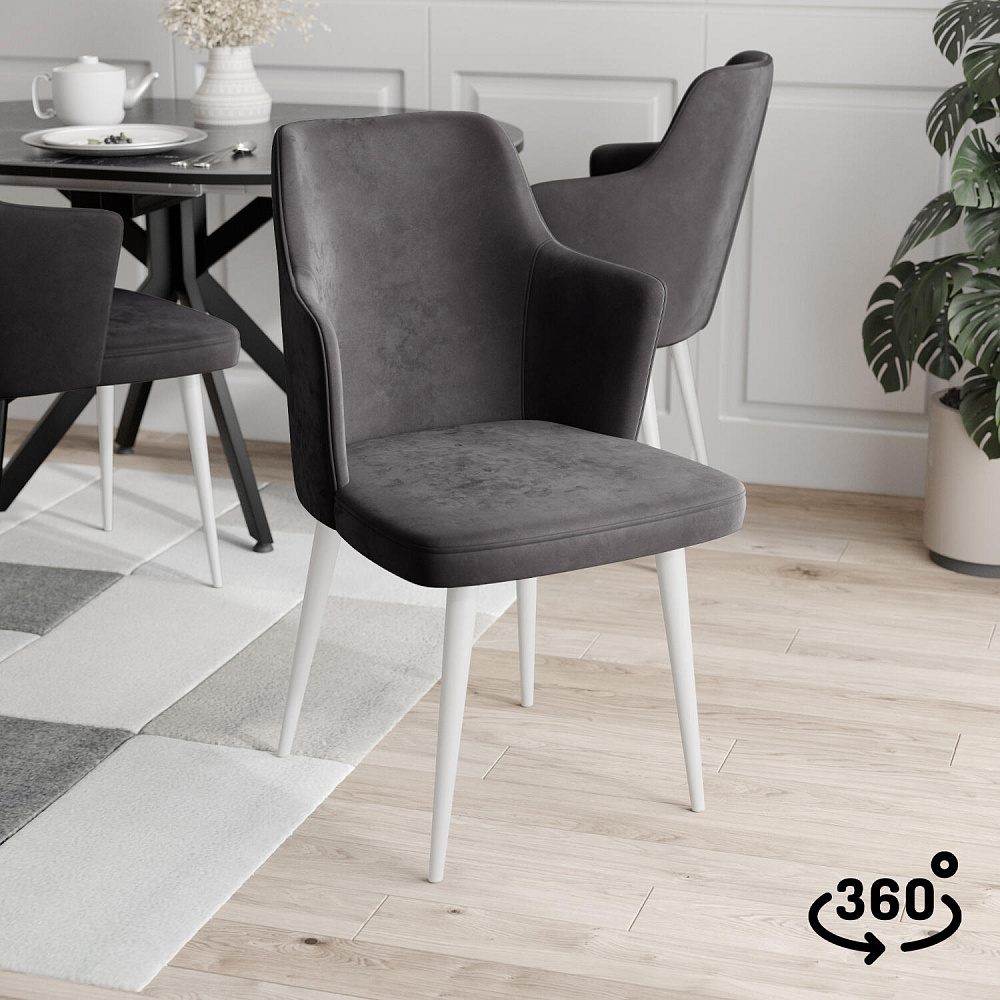 Мягкий стул «Хант» от итальянского дизайнера-конcтруктора Giovanni Lella украсит интерьер кухни и сделает отдых комфортным. Модель выделяется скругленной гладкой спинкой и угловыми короткими подлокотниками. Благодаря поворотному механизму можно удобно расположиться на стуле, не перемещая его по полу. Комплект из 4-6 стульев станет изящным акцентом в интерьере кухни.