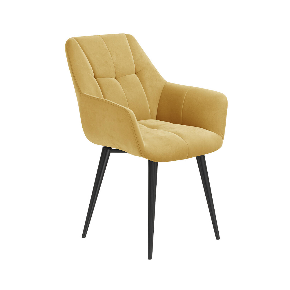 Мягкий стул «Рич» поможет создать комфортную обеденную зону на кухне или гостиной. Дизайн модели отличается аккуратными утяжками и строчкой на спинке, сиденье и подлокотниках. Обивка стула выполнена из велюра с элегантным блеском. Благодаря поворотному механизму стул не нужно отодвигать от стола, достаточно повернуть сиденье вправо или влево. Модель можно использовать в качестве дополнения к письменному или туалетному столу.