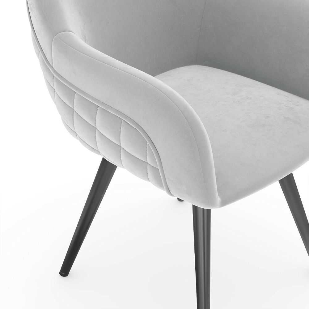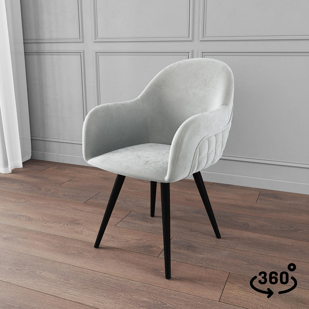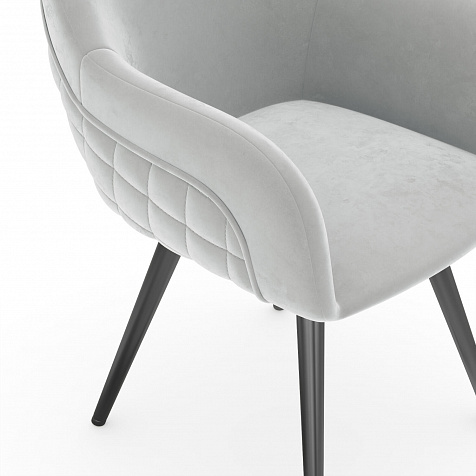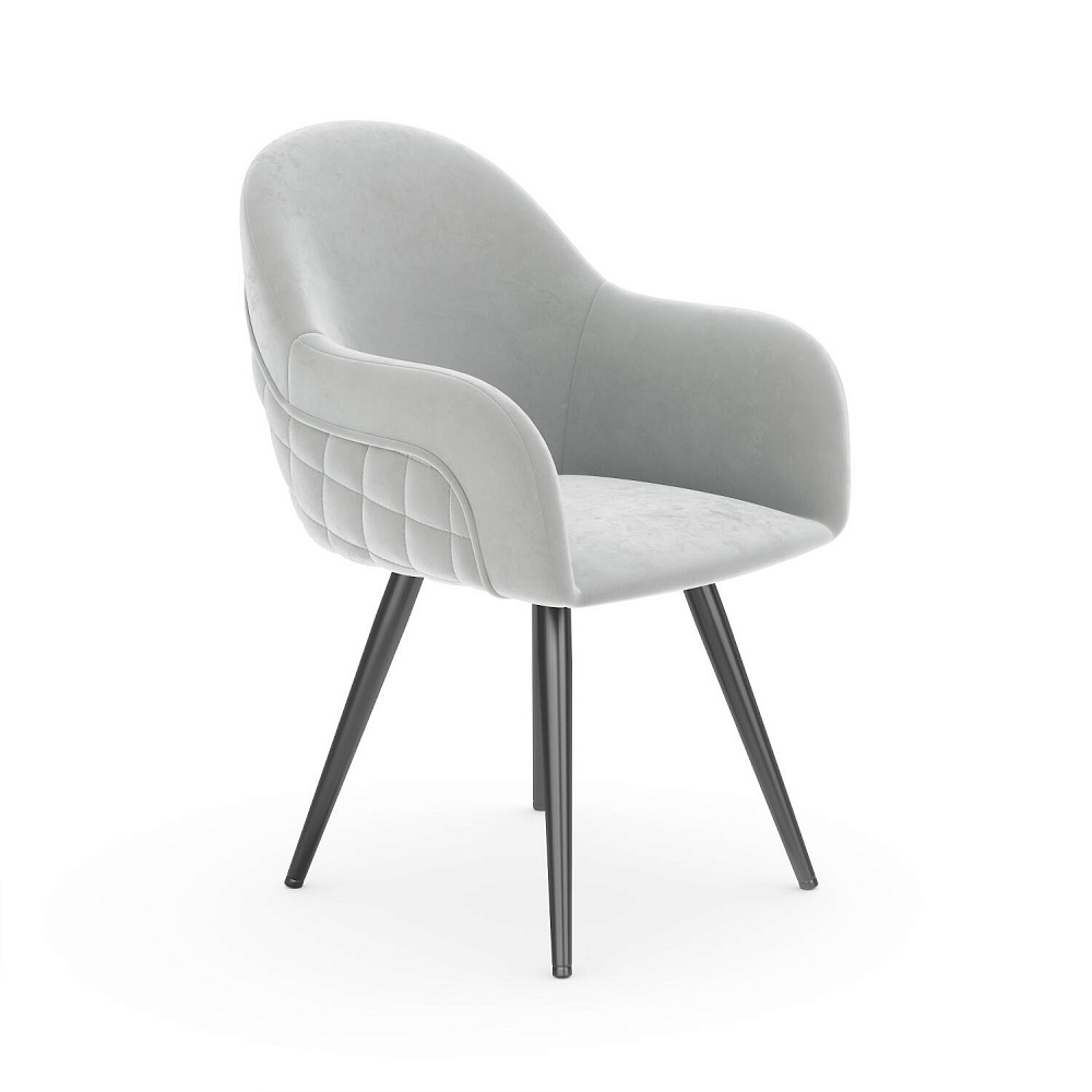 Мягкий стул с подлокотниками «Майкл» станет частью обеденной группы в современном или классическом интерьере. Обратная сторона спинки и подлокотников украшена ромбовидной строчкой и объемным кантом. Благодаря поворотному механизму можно удобно расположиться на стуле, не перемещая его по полу. Легкий блеск велюровой обивки придает модели изящность, а прямые металлические опоры дополняют сложившийся образ. Комплект из нескольких стульев поможет создать акцентную обеденную зону в интерьере. Также стул можно использовать вместе с туалетным или письменным столом.