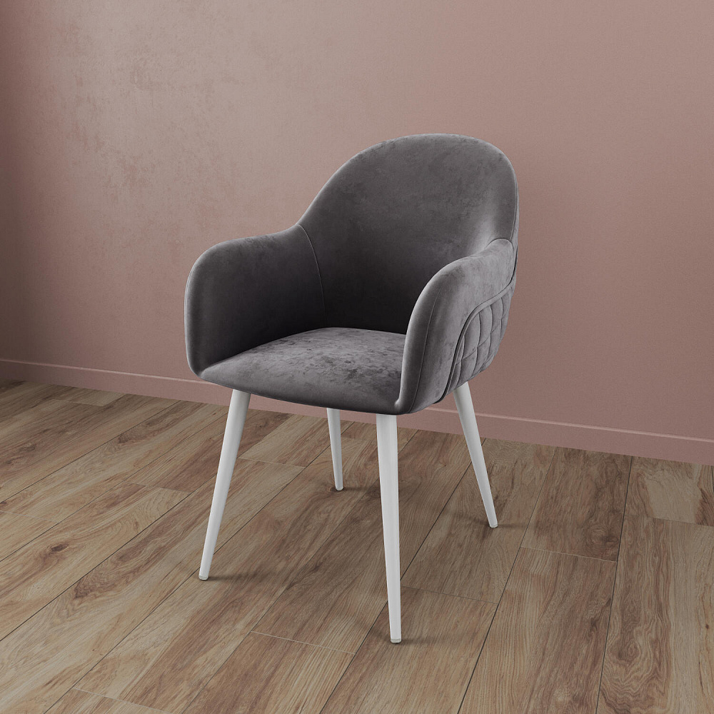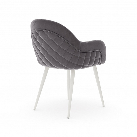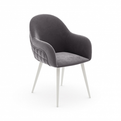 Мягкий стул с подлокотниками «Майкл» станет частью обеденной группы в современном или классическом интерьере. Обратная сторона спинки и подлокотников украшена ромбовидной строчкой и объемным кантом. Легкий блеск велюровой обивки придает модели изящность, а прямые металлические опоры дополняют сложившийся образ. Комплект из нескольких стульев поможет создать акцентную обеденную зону в интерьере. Также стул можно использовать вместе с туалетным или письменным столом.