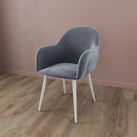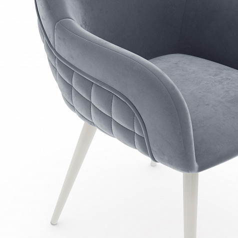 Мягкий стул с подлокотниками «Майкл» станет частью обеденной группы в современном или классическом интерьере. Обратная сторона спинки и подлокотников украшена ромбовидной строчкой и объемным кантом. Легкий блеск велюровой обивки придает модели изящность, а прямые металлические опоры дополняют сложившийся образ. Комплект из нескольких стульев поможет создать акцентную обеденную зону в интерьере. Также стул можно использовать вместе с туалетным или письменным столом.