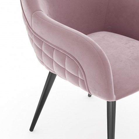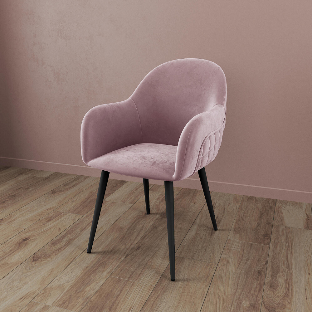 Мягкий стул с подлокотниками «Майкл» станет частью обеденной группы в современном или классическом интерьере. Обратная сторона спинки и подлокотников украшена ромбовидной строчкой и объемным кантом. Легкий блеск велюровой обивки придает модели изящность, а прямые металлические опоры дополняют сложившийся образ. Комплект из нескольких стульев поможет создать акцентную обеденную зону в интерьере. Также стул можно использовать вместе с туалетным или письменным столом.