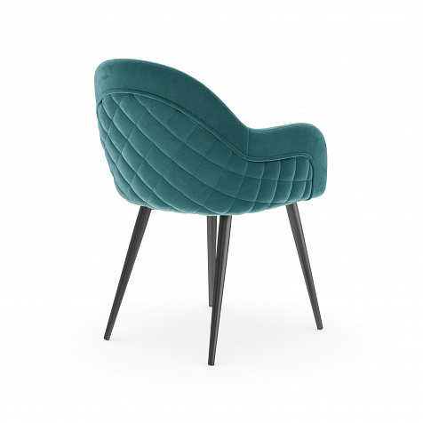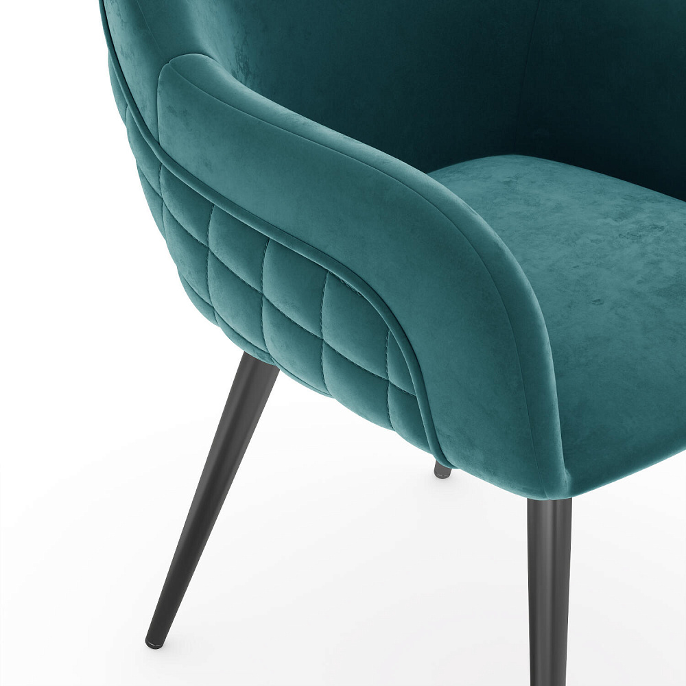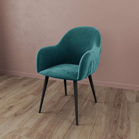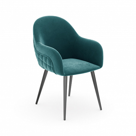 Мягкий стул с подлокотниками «Майкл» станет частью обеденной группы в современном или классическом интерьере. Обратная сторона спинки и подлокотников украшена ромбовидной строчкой и объемным кантом. Легкий блеск велюровой обивки придает модели изящность, а прямые металлические опоры дополняют сложившийся образ. Комплект из нескольких стульев поможет создать акцентную обеденную зону в интерьере. Также стул можно использовать вместе с туалетным или письменным столом.