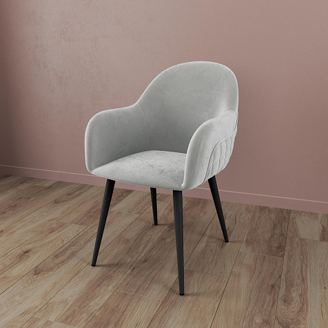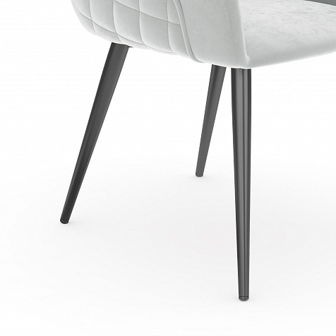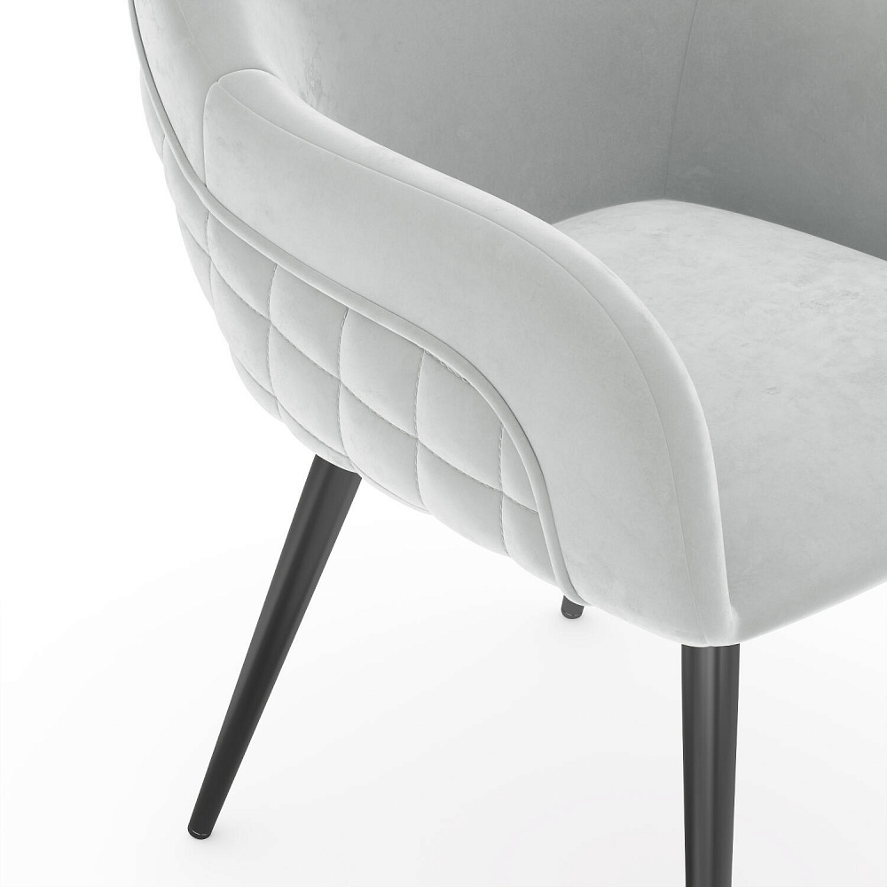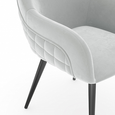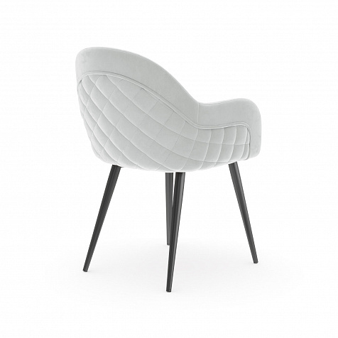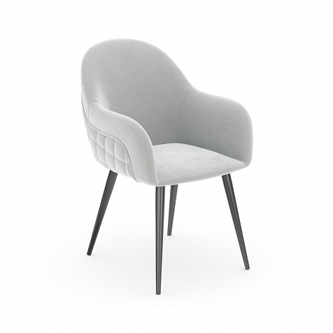 Мягкий стул с подлокотниками «Майкл» станет частью обеденной группы в современном или классическом интерьере. Обратная сторона спинки и подлокотников украшена ромбовидной строчкой и объемным кантом. Легкий блеск велюровой обивки придает модели изящность, а прямые металлические опоры дополняют сложившийся образ. Комплект из нескольких стульев поможет создать акцентную обеденную зону в интерьере. Также стул можно использовать вместе с туалетным или письменным столом.