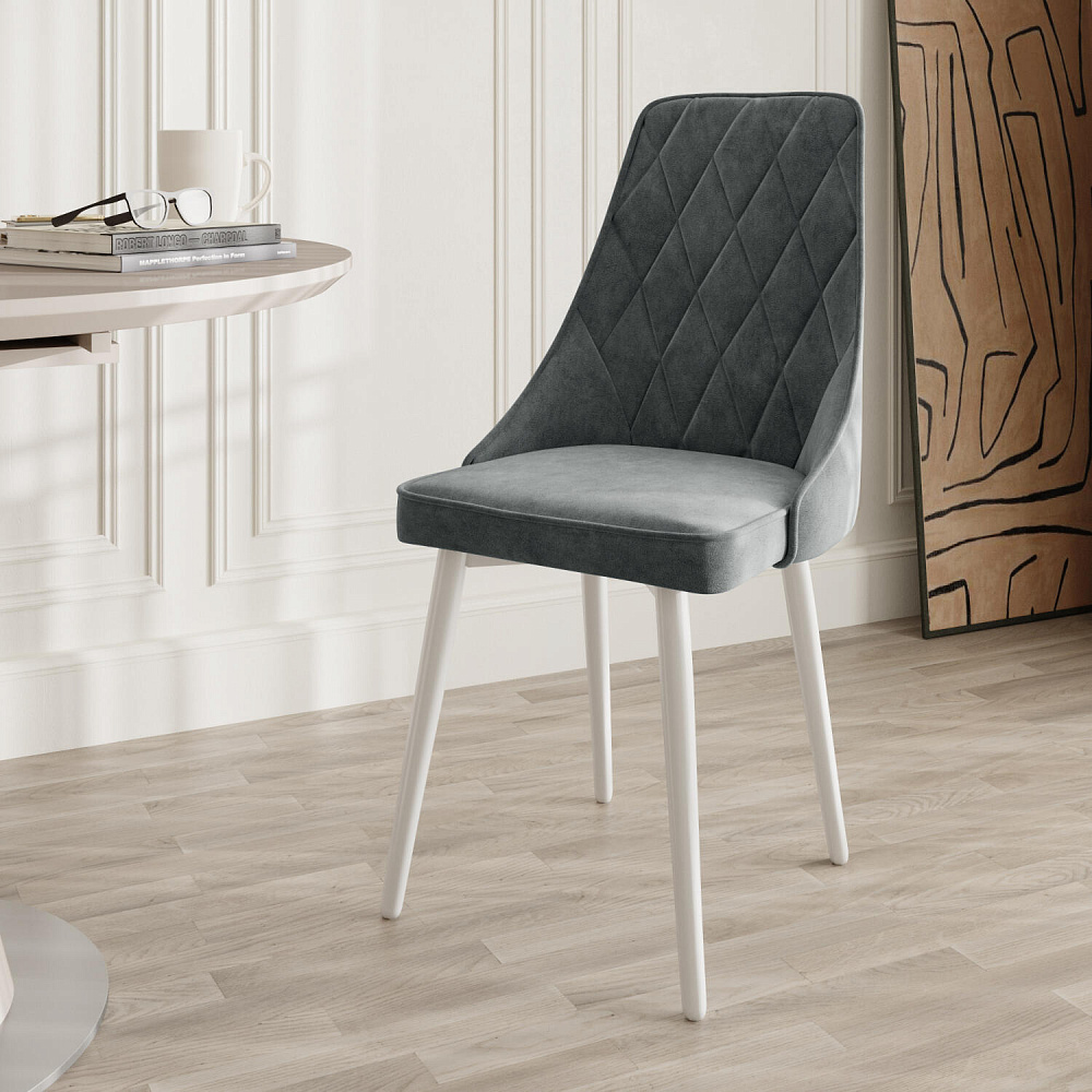 Мягкий стул «Феликс» — идеальное сочетание лаконичности и комфорта. Дизайн модели отличается высокой спинкой с ромбовидной строчкой. Обивка выполнена из велюра с приятной матовой фактурой. Модель можно использовать в комплекте из 4-6 стульев для кухни или столовой.