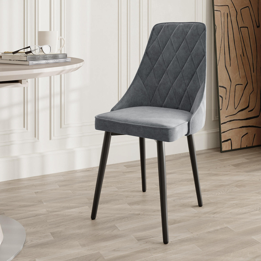 Мягкий стул «Феликс» — идеальное сочетание лаконичности и комфорта. Дизайн модели отличается высокой спинкой с ромбовидной строчкой. Обивка выполнена из велюра с приятной матовой фактурой. Модель можно использовать в комплекте из 4-6 стульев для кухни или столовой.