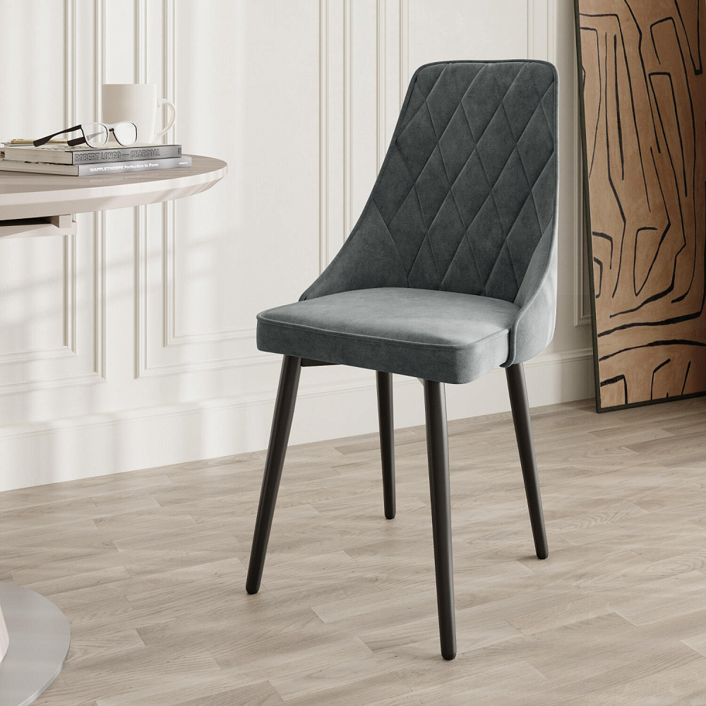 Мягкий стул «Феликс» — идеальное сочетание лаконичности и комфорта. Дизайн модели отличается высокой спинкой с ромбовидной строчкой. Обивка выполнена из велюра с приятной матовой фактурой. Модель можно использовать в комплекте из 4-6 стульев для кухни или столовой.