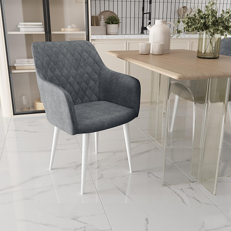 Мягкий стул с подлокотниками «Роберт» от итальянского дизайнера-конcтруктора Giovanni Lella сделает отдых комфортным и украсит интерьер. Модель выделяется ромбовидной отстрочкой на внутренней части спинки и узкими подлокотниками. Комплект из 4-6 стульев станет изящным акцентом в интерьере кухни.