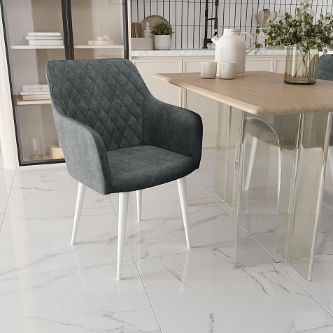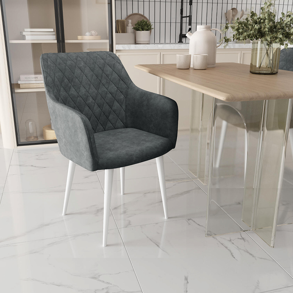 Мягкий стул с подлокотниками «Роберт» от итальянского дизайнера-конcтруктора Giovanni Lella сделает отдых комфортным и украсит интерьер. Модель выделяется ромбовидной отстрочкой на внутренней части спинки и узкими подлокотниками. Комплект из 4-6 стульев станет изящным акцентом в интерьере кухни.
