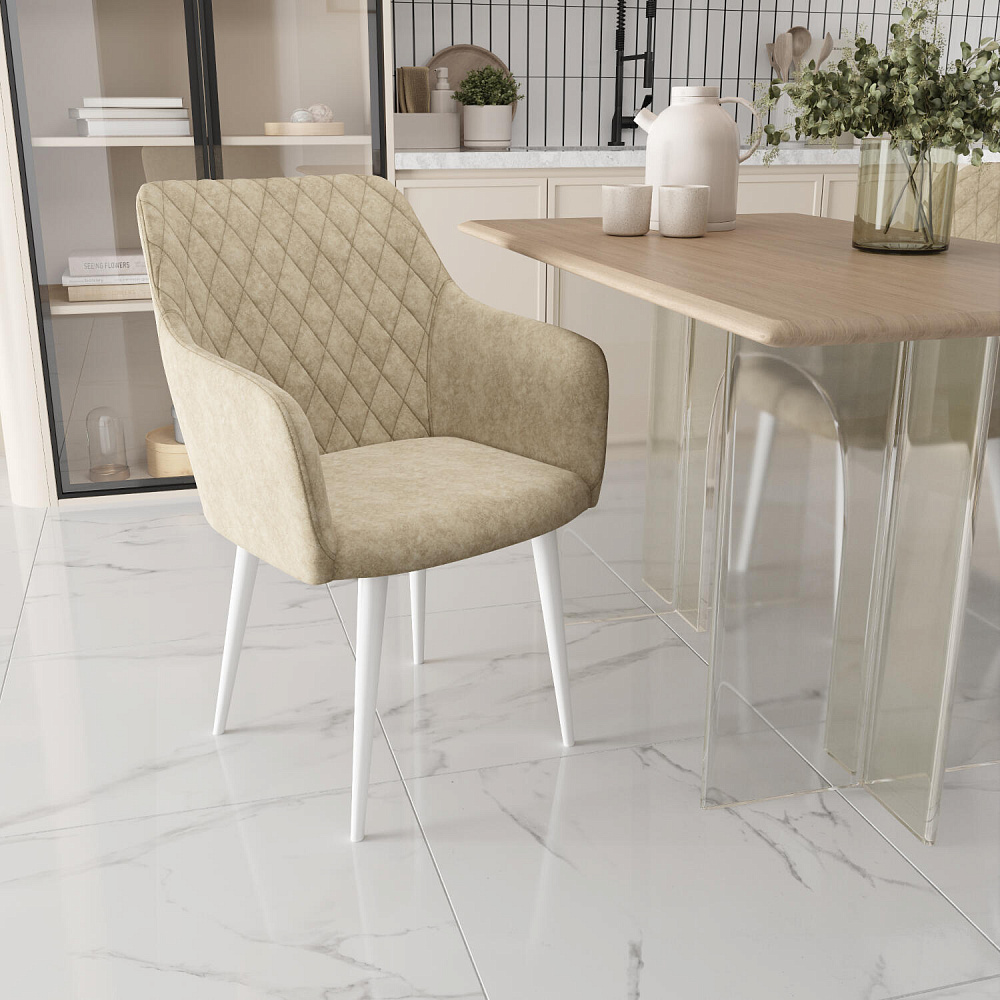 Мягкий стул с подлокотниками «Роберт» от итальянского дизайнера-конcтруктора Giovanni Lella сделает отдых комфортным и украсит интерьер. Модель выделяется ромбовидной отстрочкой на внутренней части спинки и узкими подлокотниками. Комплект из 4-6 стульев станет изящным акцентом в интерьере кухни.