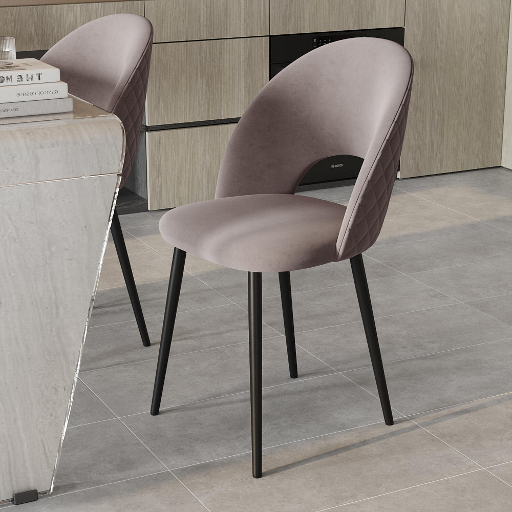 Мягкий стул «Тоби» подойдет для создания обеденной группы в современном стиле, лофт или неоклассика. Дизайн модели отличается скругленной спинкой и декором в виде строчки ромбовидной формы с наружной части спинки. Обивка выполнена из велюра с приятной матовой фактурой. Комплект из 4-6 стульев станет изящным акцентом в интерьере кухни. Также стул можно использовать вместе с туалетным или письменным столом.