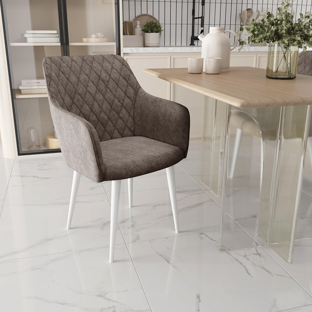 Мягкий стул с подлокотниками «Роберт» от итальянского дизайнера-конcтруктора Giovanni Lella сделает отдых комфортным и украсит интерьер. Модель выделяется ромбовидной отстрочкой на внутренней части спинки и узкими подлокотниками. Комплект из 4-6 стульев станет изящным акцентом в интерьере кухни.