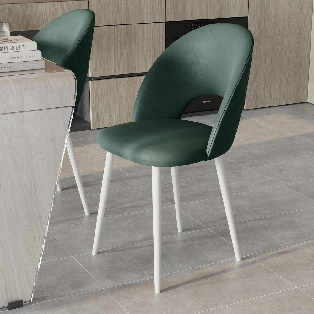 Мягкий стул «Тоби» подойдет для создания обеденной группы в современном стиле, лофт или неоклассика. Дизайн модели отличается скругленной спинкой и декором в виде строчки ромбовидной формы с наружной части спинки. Обивка выполнена из велюра с приятной матовой фактурой. Комплект из 4-6 стульев станет изящным акцентом в интерьере кухни. Также стул можно использовать вместе с туалетным или письменным столом.