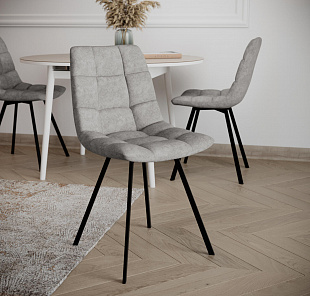 Мягкий стул «Тоби» подойдет для создания обеденной группы в современном стиле, лофт или неоклассика. Дизайн модели отличается скругленной спинкой и декором в виде строчки ромбовидной формы с наружной части спинки. Обивка выполнена из велюра с приятной матовой фактурой. Комплект из 4-6 стульев станет изящным акцентом в интерьере кухни. Также стул можно использовать вместе с туалетным или письменным столом.