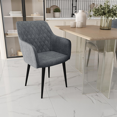 Мягкий стул с подлокотниками «Роберт» от итальянского дизайнера-конcтруктора Giovanni Lella сделает отдых комфортным и украсит интерьер. Модель выделяется ромбовидной отстрочкой на внутренней части спинки и узкими подлокотниками. Комплект из 4-6 стульев станет изящным акцентом в интерьере кухни.