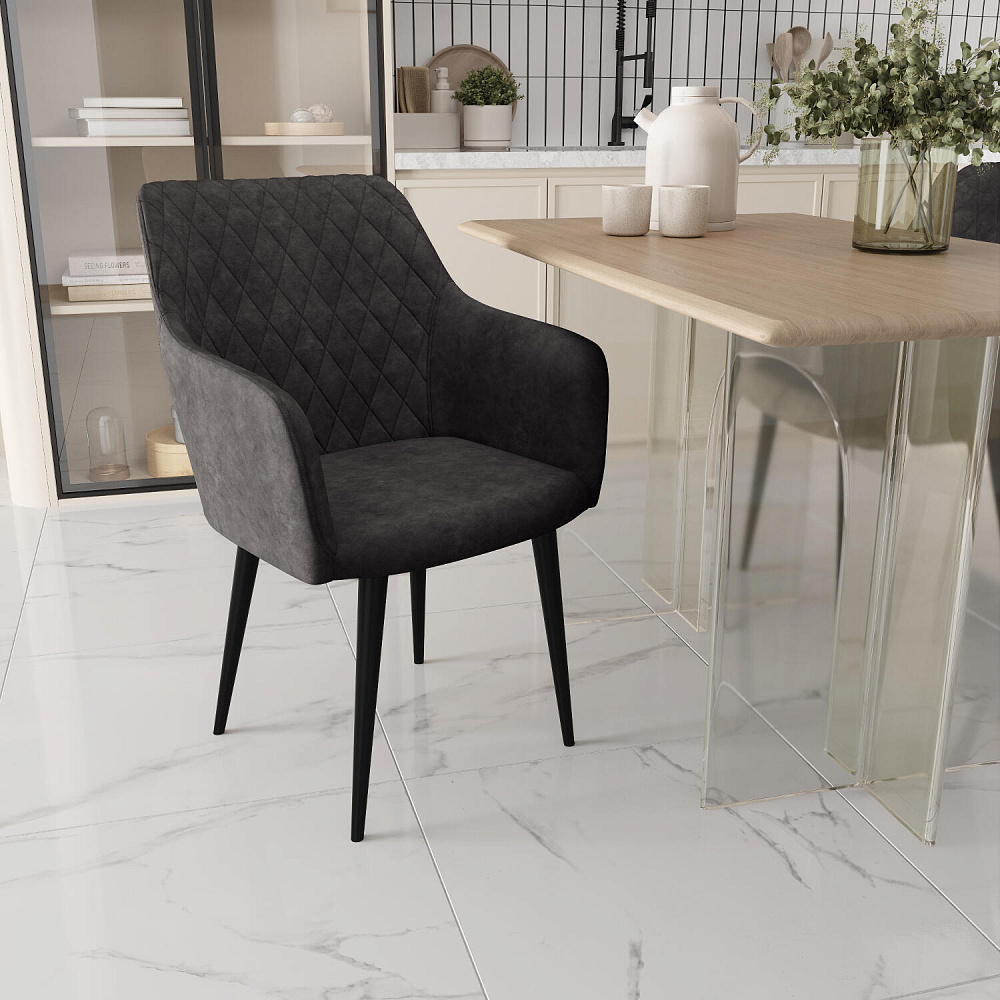 Мягкий стул с подлокотниками «Роберт» от итальянского дизайнера-конcтруктора Giovanni Lella сделает отдых комфортным и украсит интерьер. Модель выделяется ромбовидной отстрочкой на внутренней части спинки и узкими подлокотниками. Комплект из 4-6 стульев станет изящным акцентом в интерьере кухни.