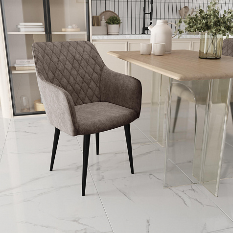 Мягкий стул с подлокотниками «Роберт» от итальянского дизайнера-конcтруктора Giovanni Lella сделает отдых комфортным и украсит интерьер. Модель выделяется ромбовидной отстрочкой на внутренней части спинки и узкими подлокотниками. Комплект из 4-6 стульев станет изящным акцентом в интерьере кухни.
