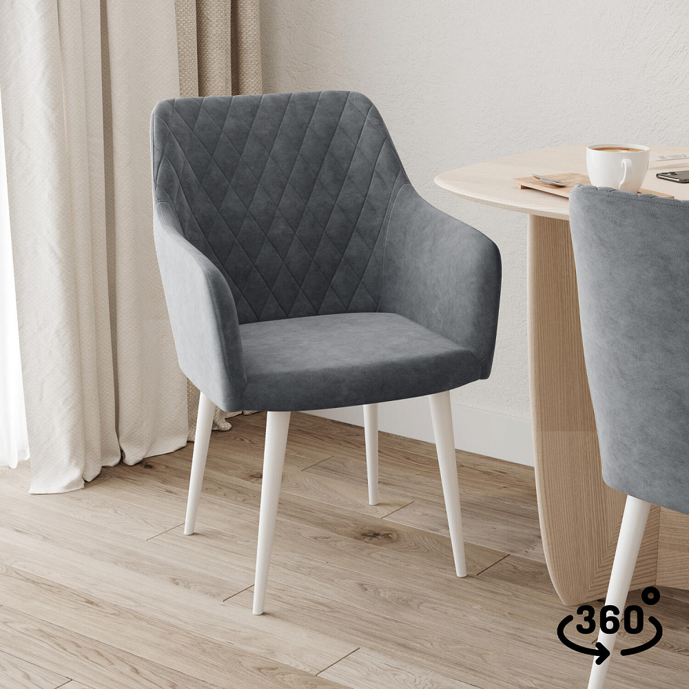 Мягкий стул с подлокотниками «Роберт» от итальянского дизайнера-конcтруктора Giovanni Lella сделает отдых комфортным и украсит интерьер. Модель выделяется ромбовидной строчкой на внутренней части спинки и узкими подлокотниками. Благодаря поворотному механизму можно удобно расположиться на стуле, не перемещая его по полу. Комплект из 4-6 стульев станет изящным акцентом в интерьере кухни.