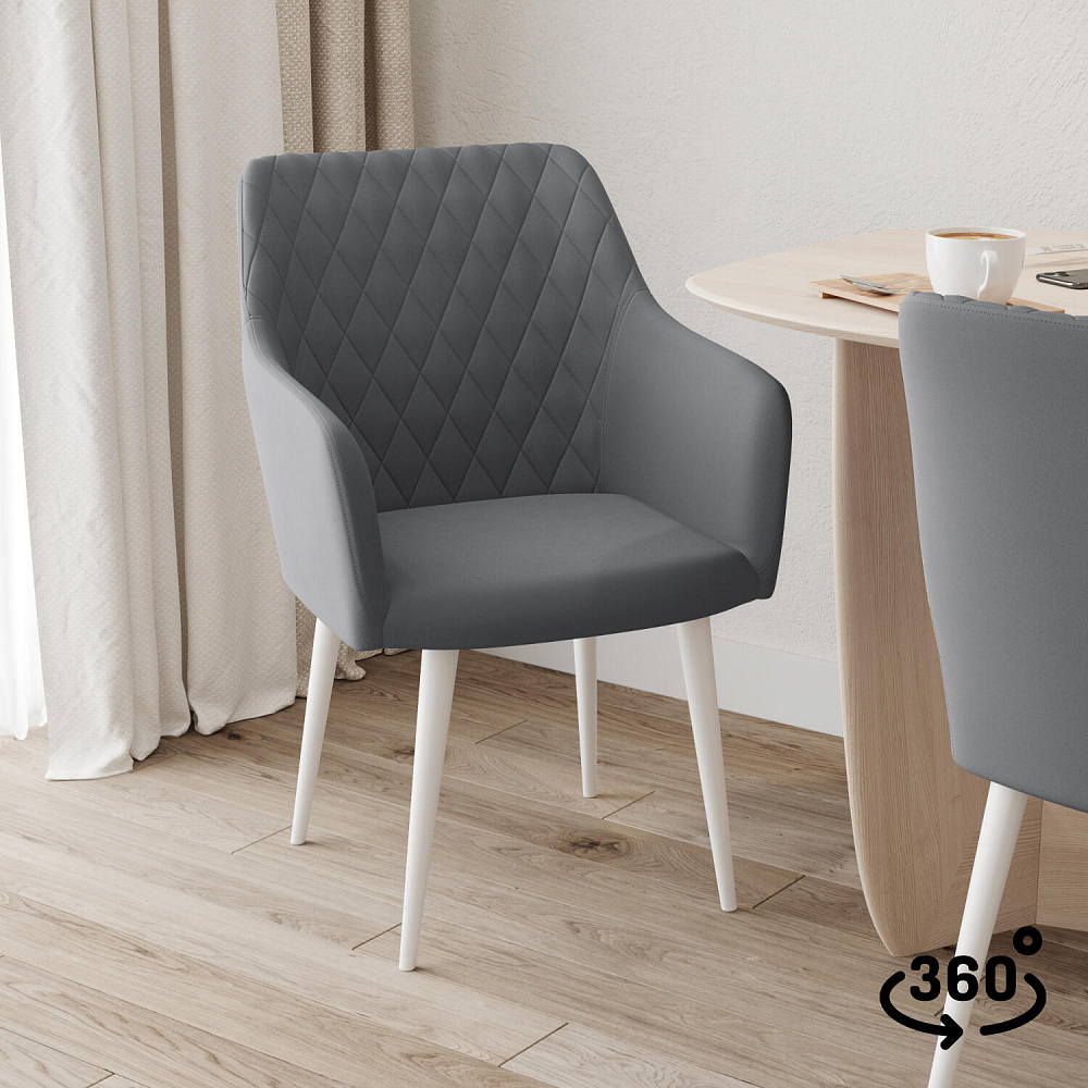 Мягкий стул с подлокотниками «Роберт» от итальянского дизайнера-конcтруктора Giovanni Lella сделает отдых комфортным и украсит интерьер. Модель выделяется ромбовидной строчкой на внутренней части спинки и узкими подлокотниками. Благодаря поворотному механизму можно удобно расположиться на стуле, не перемещая его по полу. Комплект из 4-6 стульев станет изящным акцентом в интерьере кухни.