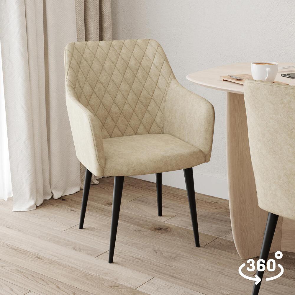 Мягкий стул с подлокотниками «Роберт» от итальянского дизайнера-конcтруктора Giovanni Lella сделает отдых комфортным и украсит интерьер. Модель выделяется ромбовидной строчкой на внутренней части спинки и узкими подлокотниками. Благодаря поворотному механизму можно удобно расположиться на стуле, не перемещая его по полу. Комплект из 4-6 стульев станет изящным акцентом в интерьере кухни.