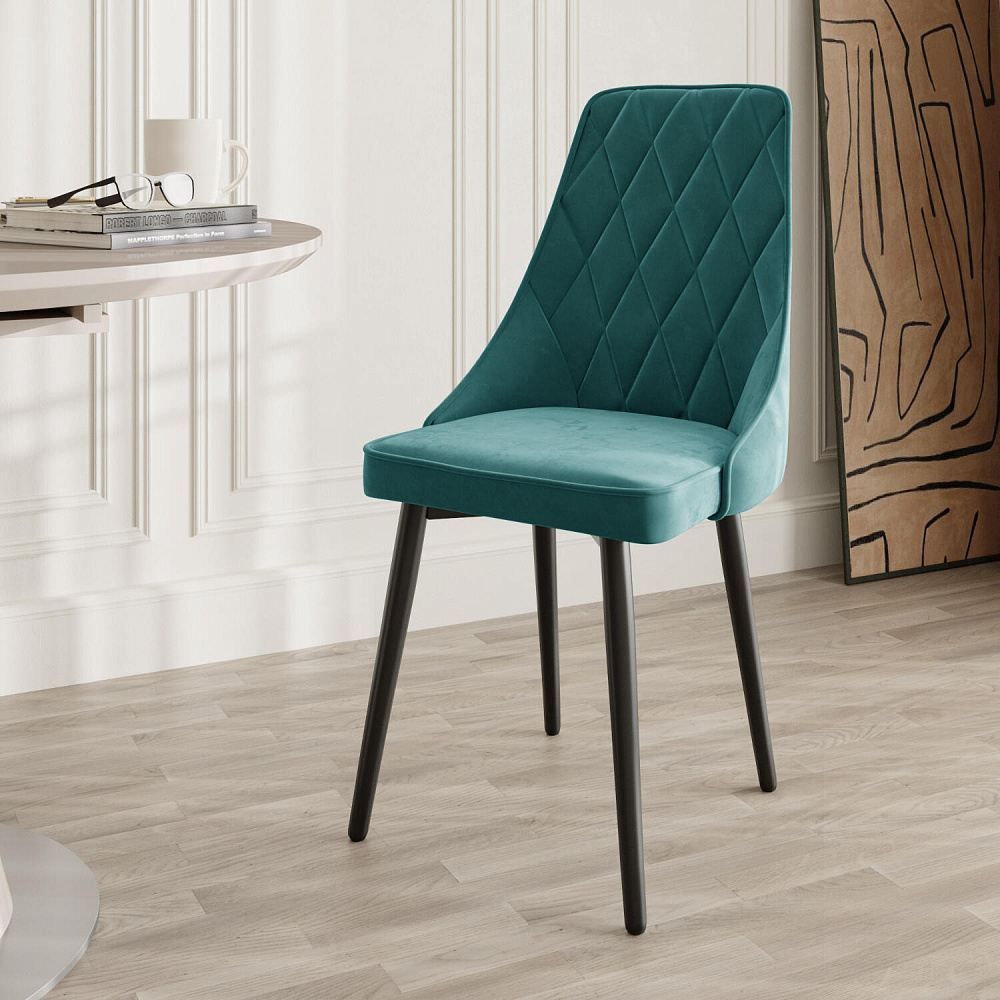 Мягкий стул «Феликс» — идеальное сочетание лаконичности и комфорта. Дизайн модели отличается высокой спинкой с ромбовидной строчкой. Обивка выполнена из велюра с приятной матовой фактурой. Модель можно использовать в комплекте из 4-6 стульев для кухни или столовой.