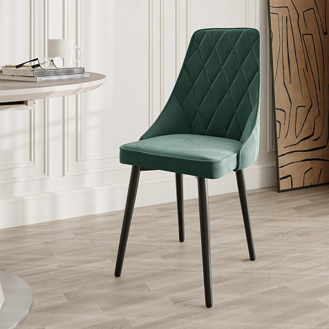 Мягкий стул «Феликс» — идеальное сочетание лаконичности и комфорта. Дизайн модели отличается высокой спинкой с ромбовидной строчкой. Обивка выполнена из велюра с приятной матовой фактурой. Модель можно использовать в комплекте из 4-6 стульев для кухни или столовой.