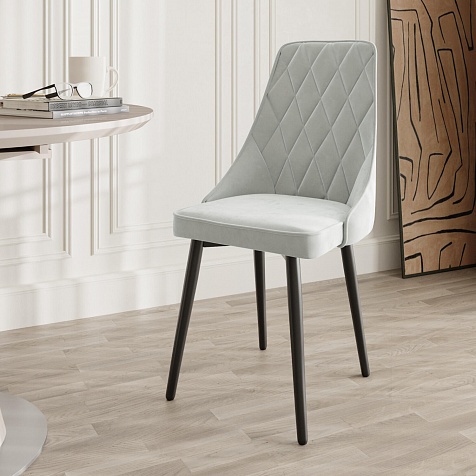Мягкий стул «Феликс» — идеальное сочетание лаконичности и комфорта. Дизайн модели отличается высокой спинкой с ромбовидной строчкой. Обивка выполнена из велюра с приятной матовой фактурой. Модель можно использовать в комплекте из 4-6 стульев для кухни или столовой.