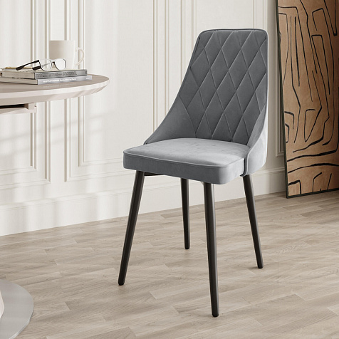 Мягкий стул «Феликс» — идеальное сочетание лаконичности и комфорта. Дизайн модели отличается высокой спинкой с ромбовидной строчкой. Обивка выполнена из велюра с приятной матовой фактурой. Модель можно использовать в комплекте из 4-6 стульев для кухни или столовой.