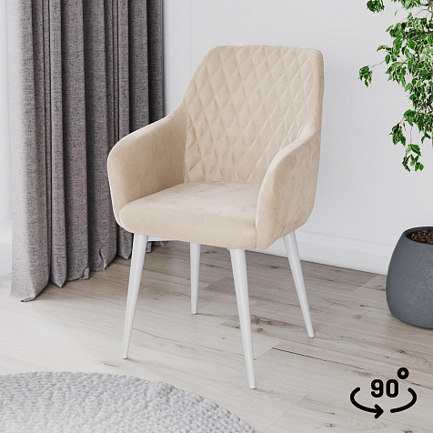 Мягкий стул с подлокотниками «Роберт» от итальянского дизайнера-конcтруктора Giovanni Lella сделает отдых комфортным и украсит интерьер. Модель выделяется ромбовидной строчкой на внутренней части спинки и узкими подлокотниками. Благодаря поворотному механизму можно удобно расположиться на стуле, не перемещая его по полу. Комплект из 4-6 стульев станет изящным акцентом в интерьере кухни.