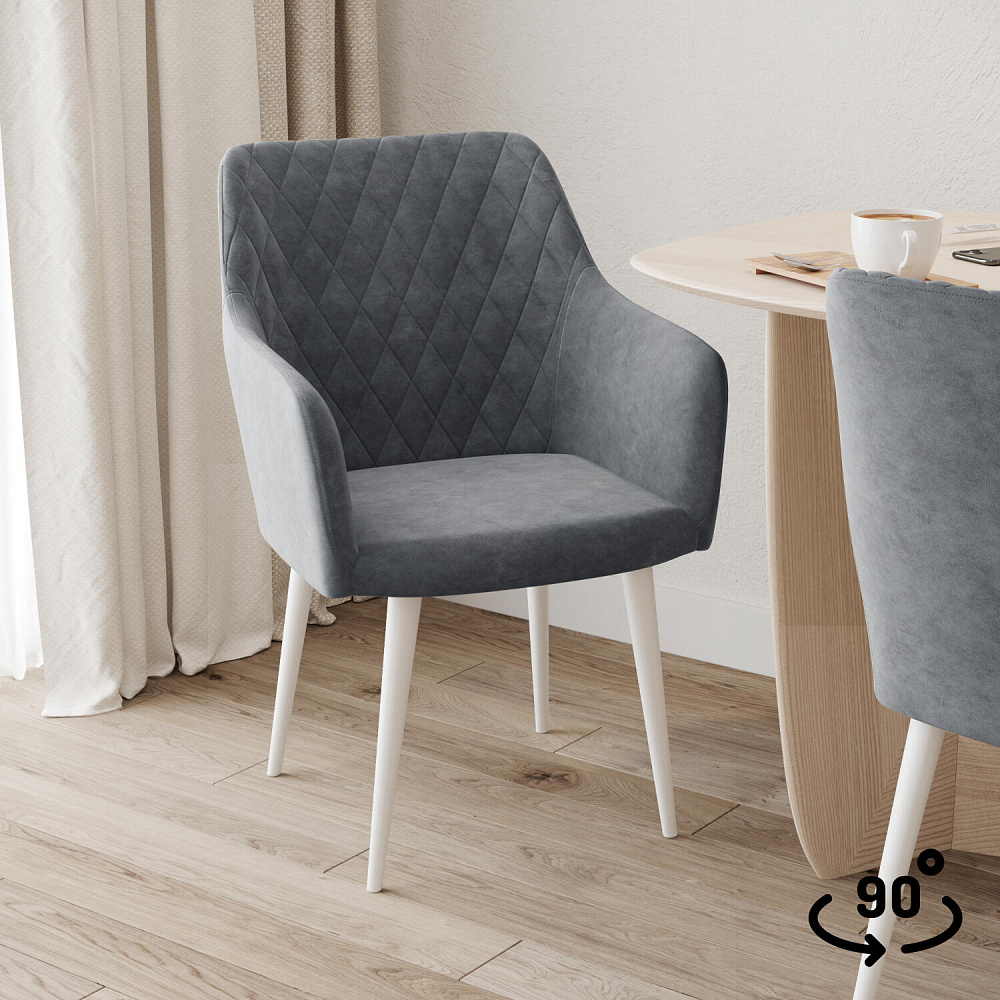 Мягкий стул с подлокотниками «Роберт» от итальянского дизайнера-конcтруктора Giovanni Lella сделает отдых комфортным и украсит интерьер. Модель выделяется ромбовидной строчкой на внутренней части спинки и узкими подлокотниками. Благодаря поворотному механизму можно удобно расположиться на стуле, не перемещая его по полу. Комплект из 4-6 стульев станет изящным акцентом в интерьере кухни.