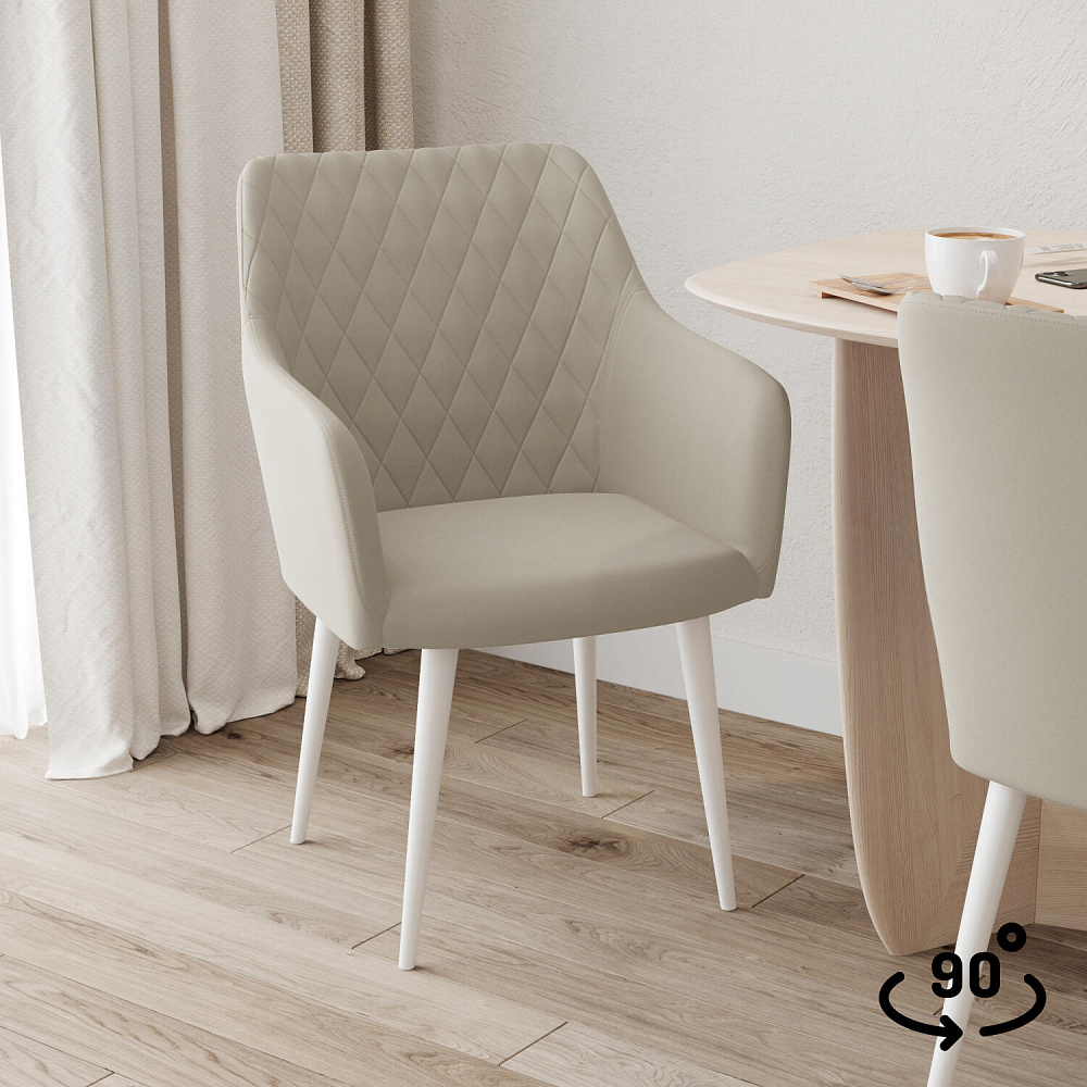 Мягкий стул с подлокотниками «Роберт» от итальянского дизайнера-конcтруктора Giovanni Lella сделает отдых комфортным и украсит интерьер. Модель выделяется ромбовидной строчкой на внутренней части спинки и узкими подлокотниками. Благодаря поворотному механизму можно удобно расположиться на стуле, не перемещая его по полу. Комплект из 4-6 стульев станет изящным акцентом в интерьере кухни.