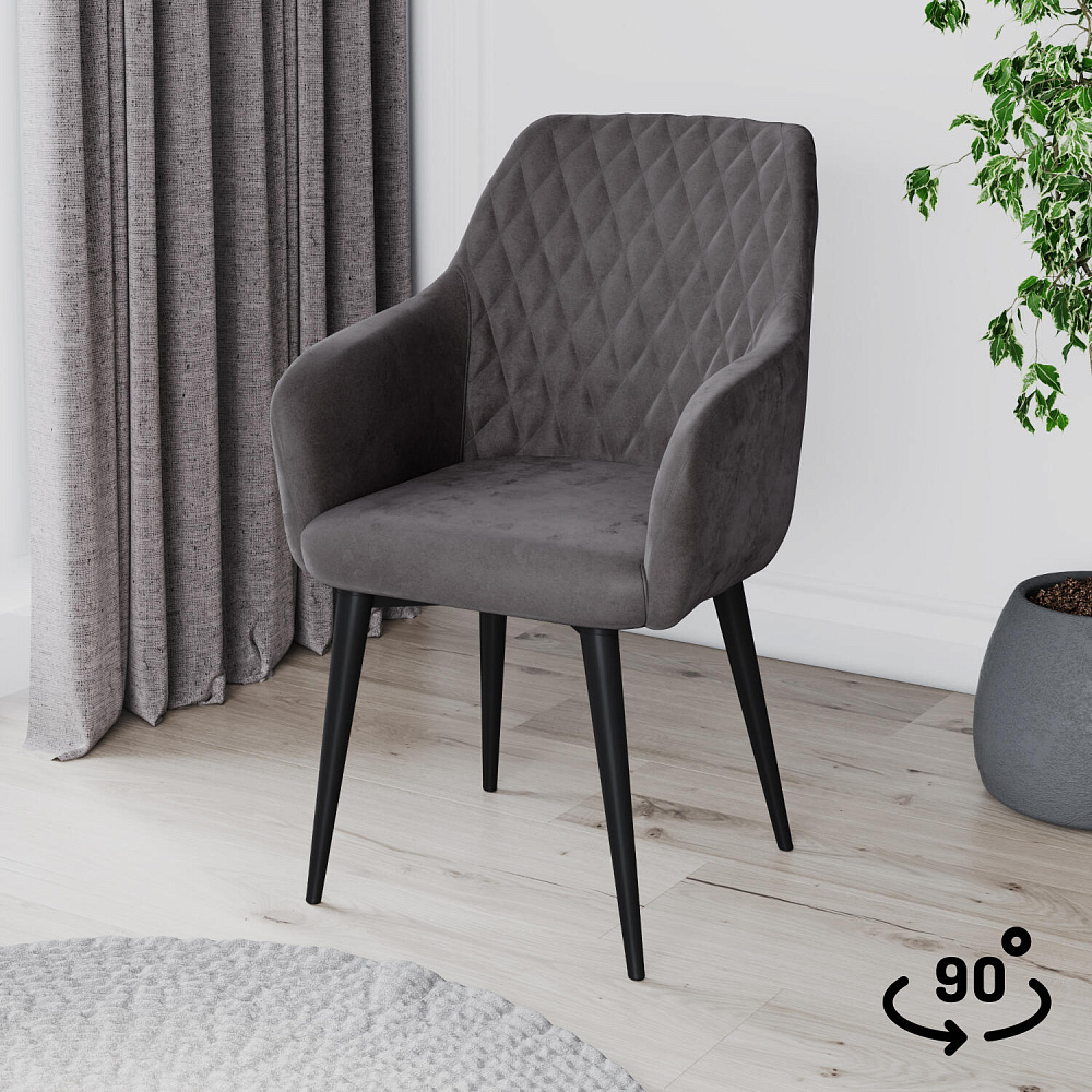 Мягкий стул с подлокотниками «Роберт» от итальянского дизайнера-конcтруктора Giovanni Lella сделает отдых комфортным и украсит интерьер. Модель выделяется ромбовидной строчкой на внутренней части спинки и узкими подлокотниками. Благодаря поворотному механизму можно удобно расположиться на стуле, не перемещая его по полу. Комплект из 4-6 стульев станет изящным акцентом в интерьере кухни.