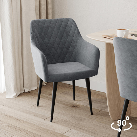 Мягкий стул с подлокотниками «Роберт» от итальянского дизайнера-конcтруктора Giovanni Lella сделает отдых комфортным и украсит интерьер. Модель выделяется ромбовидной строчкой на внутренней части спинки и узкими подлокотниками. Благодаря поворотному механизму можно удобно расположиться на стуле, не перемещая его по полу. Комплект из 4-6 стульев станет изящным акцентом в интерьере кухни.