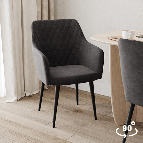 Мягкий стул с подлокотниками «Роберт» от итальянского дизайнера-конcтруктора Giovanni Lella сделает отдых комфортным и украсит интерьер. Модель выделяется ромбовидной строчкой на внутренней части спинки и узкими подлокотниками. Благодаря поворотному механизму можно удобно расположиться на стуле, не перемещая его по полу. Комплект из 4-6 стульев станет изящным акцентом в интерьере кухни.
