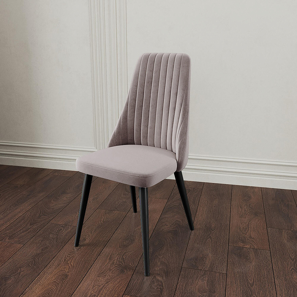 Мягкий стул «Ларри» — лаконичная модель в современном дизайне. Модель отличается высокой скругленной спинкой с ненавязчивой вертикальной прострочкой. Обивка выполнена из мягкого и приятного на ощупь велюра. Комплект из 3-4 стульев поможет создать уютную обеденную зону на кухне или столовой. Также стул можно использовать в качестве дополнения к письменному или туалетному столу.