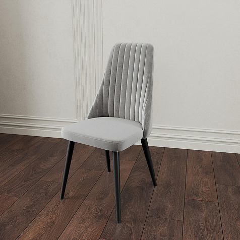 Мягкий стул «Ларри» — лаконичная модель в современном дизайне. Модель отличается высокой скругленной спинкой с ненавязчивой вертикальной прострочкой. Обивка выполнена из мягкого и приятного на ощупь велюра. Комплект из 3-4 стульев поможет создать уютную обеденную зону на кухне или столовой. Также стул можно использовать в качестве дополнения к письменному или туалетному столу.